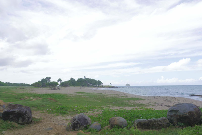 ACCES : Après le bourg de la ville de Sainte Rose en direction de Deshaies, après la plage des Amandiers, quittez la route nationale, puis prenez une route en terre qui sillonne une savane au paysage authentique.Traversez ce champ bordé par la mangrove et peuplé de bœufs en liberté qui viennent pâturer et enfin, accédez au bord de mer entre eau salée et bout de terre.