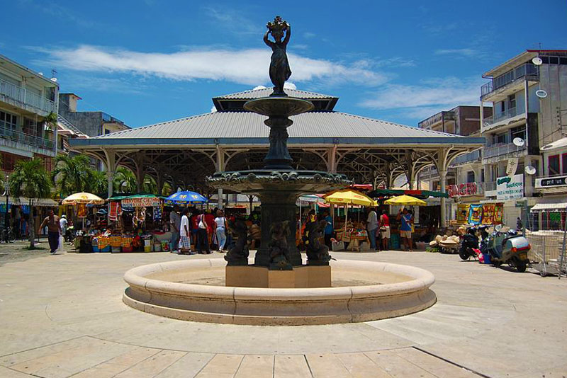 Le projet de reconstruction de la halle du marché couvert — sur l’ancienne place Royale devenue place de la Liberté — détruite dans l’incendie du 18 juillet 1871, est décidé par le maire de la ville, Alcide Léger. Il est confié, après vote du conseil municipal du 12 janvier 1872, à l’architecte Charles Trouillé qui en conçoit les plans sur le principe, alors à la mode, des halles en fer du type du Pavillon Baltard et supervise la construction des poutrelles métalliques auprès de la Maison Joly d’Argenteuil, en métropole, qui réalise également en parallèle les structures de l’église Saint-Pierre-et-Saint-Paul. La nouvelle halle du marché central couvert de Pointe-à-Pitre est inaugurée le 17 janvier 1874 ainsi qu’une fontaine, importée également depuis la Métropole. Au XXe siècle, le marché devient un marché aux épices.