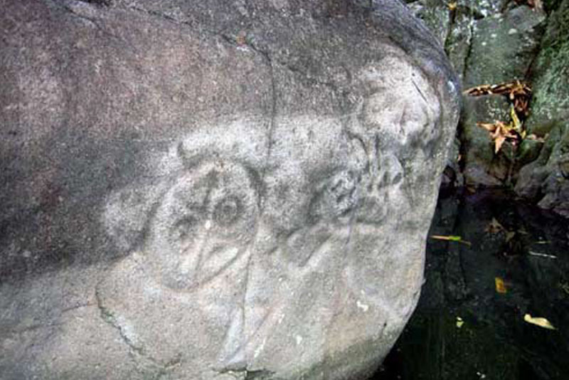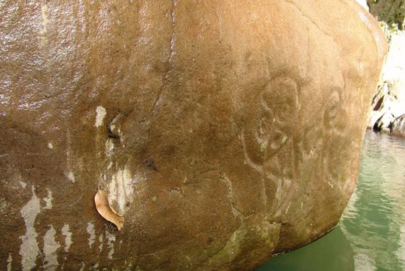 Dix-neuf roches comportent au moins 147 gravures, dont deux avec polissoirs. En 1995, le cyclone Marylin a révélé un bloc rocheux couvert de quatre gravures, de cupules et de polissoirs.