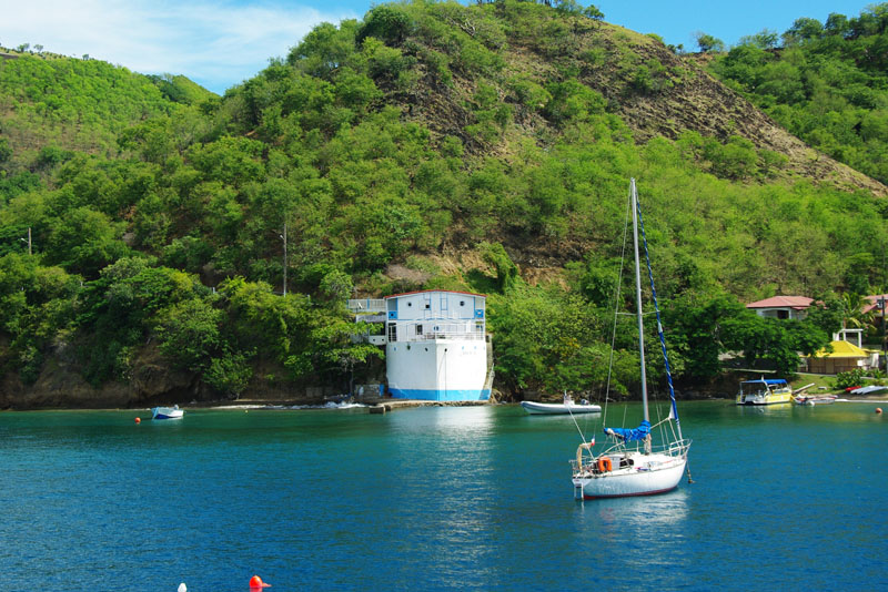 Dès votre arrivée sur l’île, votre regard sera retenu par la couleur uniforme et rouge des maisons des Saintes. De loin, ces cases créoles disséminées dans le paysage verdoyant rappellent des maisons de poupées. Toutefois, la plus étonnante architecture saintoise demeure la maison-bateau, construite dans l’anse du bourg. Elle se trouve à proximité du ponton. Elle attire les regards puisqu’à l’encontre des autres habitations de l’île qui sont en rouge, elle est peinte en blanc et en bleu.