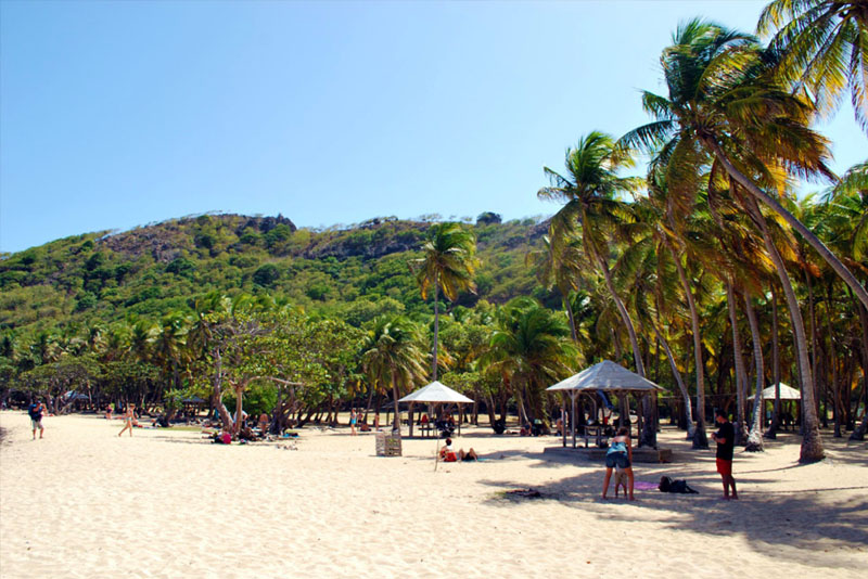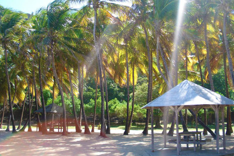 Longue de 800 mètres, elle borde la baie de Pompierre, au nord-est de l’île, et se trouve protégée des alizés par la présence d’un îlet, les Roches percées.