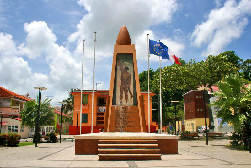 Commandé par le maire de la commune, Max Clainville Blancourt, le monument aux morts est réalisé par la société Payot-Khan-Farcy pour un montant de 136 000 francs. L’œuvre est conçue par le sculpteur et céramiste Ardaches Baldjian. Installé sur la place de la Liberté, le monument est inauguré le 26 décembre 1937, en présence notamment du gouverneur de la Guadeloupe, Félix Éboué.